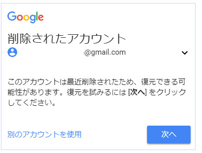 Googleアカウントを削除してしまった場合、数日以内(約2~3週間)なら復活させることができます。