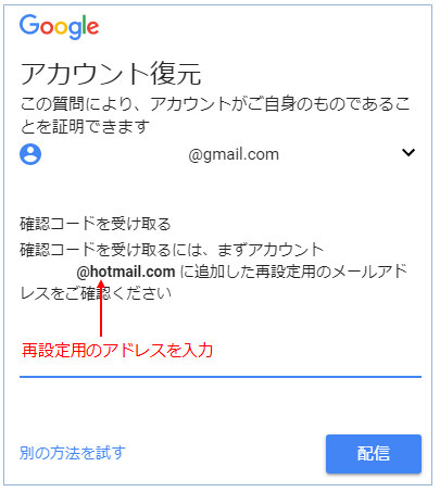 再設定用のメールアドレスにアクセスし、確認コードを取得したら入力して「次へ」