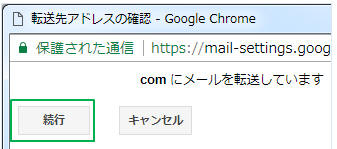 「*メールアドレス*に転送しています」のメッセージには「続行」をクリック