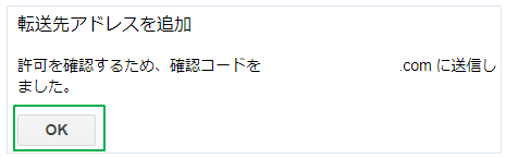 「許可を確認するため確認コードを*メールアドレス*に送信しました」が表示されたら「OK」をクリック