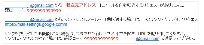 転送先のメールアドレスに下記メッセージが届く ▼▼▼