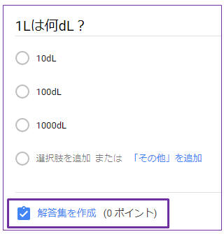 各質問の回答、点数を設定する場合は「解答集を作成」をクリック