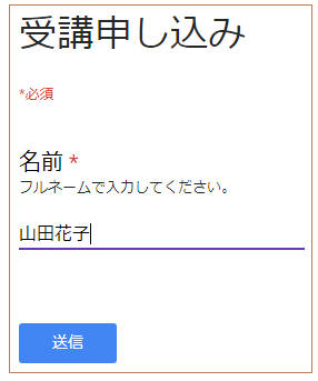 名前や住所の入力には「記述式」または「段落」で作成します。
