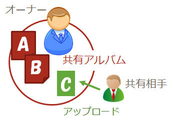 共有相手がアップロードした写真は削除されます(アップロードした人がオーナーです)